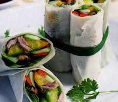 - Cho xà lách, rau thơm lên bánh pía, xếp thịt, các loại ớt thái sợi vào, cuốn chặt tay. Đun nóng dầu, phi thơm lượng tỏi còn lại, cho tương xí muội vào, thêm chút nước, đun 5 phút, dùng làm nước chấm cuốn.