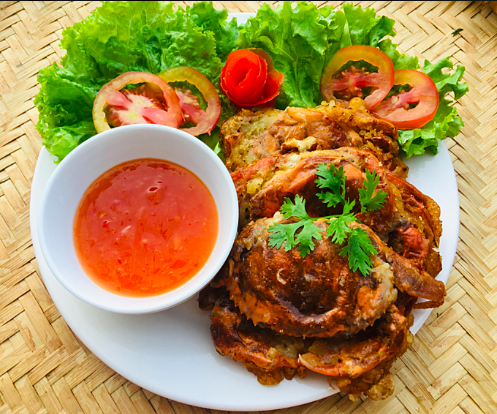 - Cua: nhúng vào hỗn hợp bột, chiên vàng.