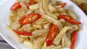- Củ cải gọt vỏ, xắt mỏng rồi thái chỉ, dài 5cm, ngâm nước muối (khoảng hai thìa cà phê muối hoà tan vào nước) 15 phút, rồi vớt để ráo, đem phơi một nắng hơi heo héo, lưu ý đừng khô quắt queo. Lá cải chẻ cuống làm ba cho cọng nhỏ làm dưa mới thấm, xắt ngắn vừa 5cm, cũng đem ngâm muối rồi phơi tương tự như cũ.