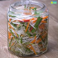 - Cho giá hẹ vào tô, cho hỗn hợp giấm đường và ngập mặt gía hẹ, để qua một giờ nhấm thử thấy cọng giá không có vị chua ngọt vừa ý hì cho thêm vào ít giấm hoặc đường tuỳ ý. Món giá hẹ muối xổi này chỉ nên làm và ăn trong ngày.