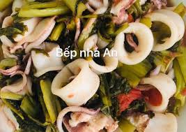 - Dưa chua rửa qua nước cho bớt chua. Phi thơm hành tỏi với dầu ăn rồi cho mực vào xào với lửa to. Nêm gia vị vừa miệng.