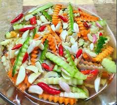 - Cho su hào, ớt ngọt cùng tất cả các gia vị và rau thơm vào tô to, trộn đều. Để yên cho thấm gia vị. Sau 10 phút có thể dọn ăn.
