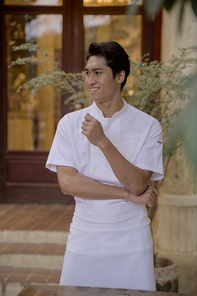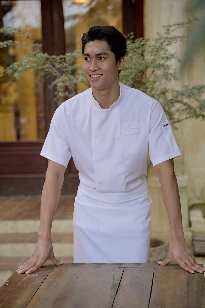 [CHEFX16] Áo Bếp ngắn tay cổ tàu, cúc cài, không phối lưới - CHEF X Kitchen Uniform