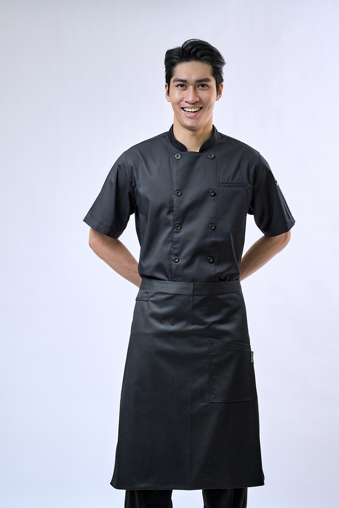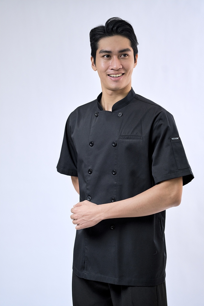 [CHEFX16] Áo Bếp ngắn tay cổ tàu, cúc cài, không phối lưới - CHEF X Kitchen Uniform