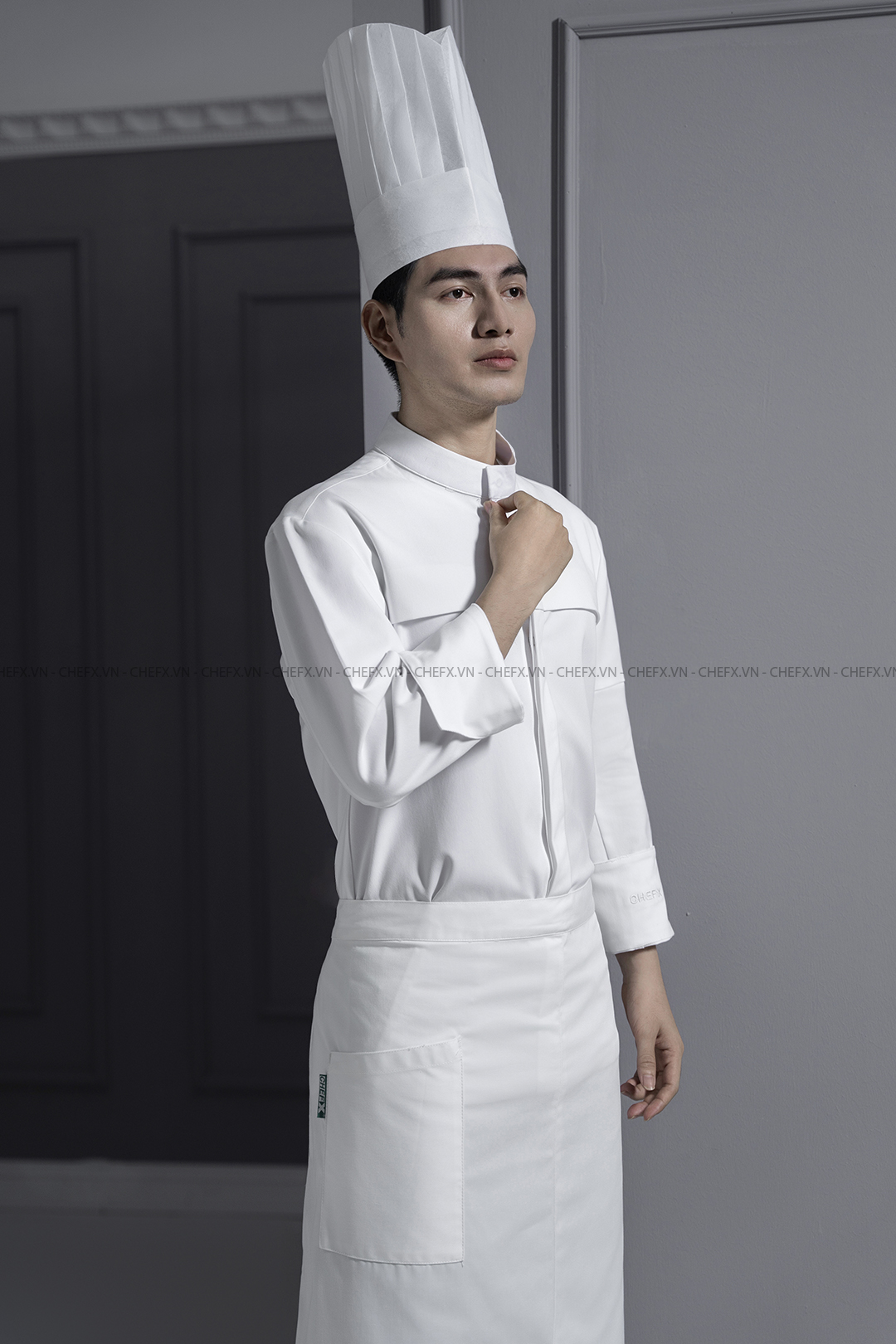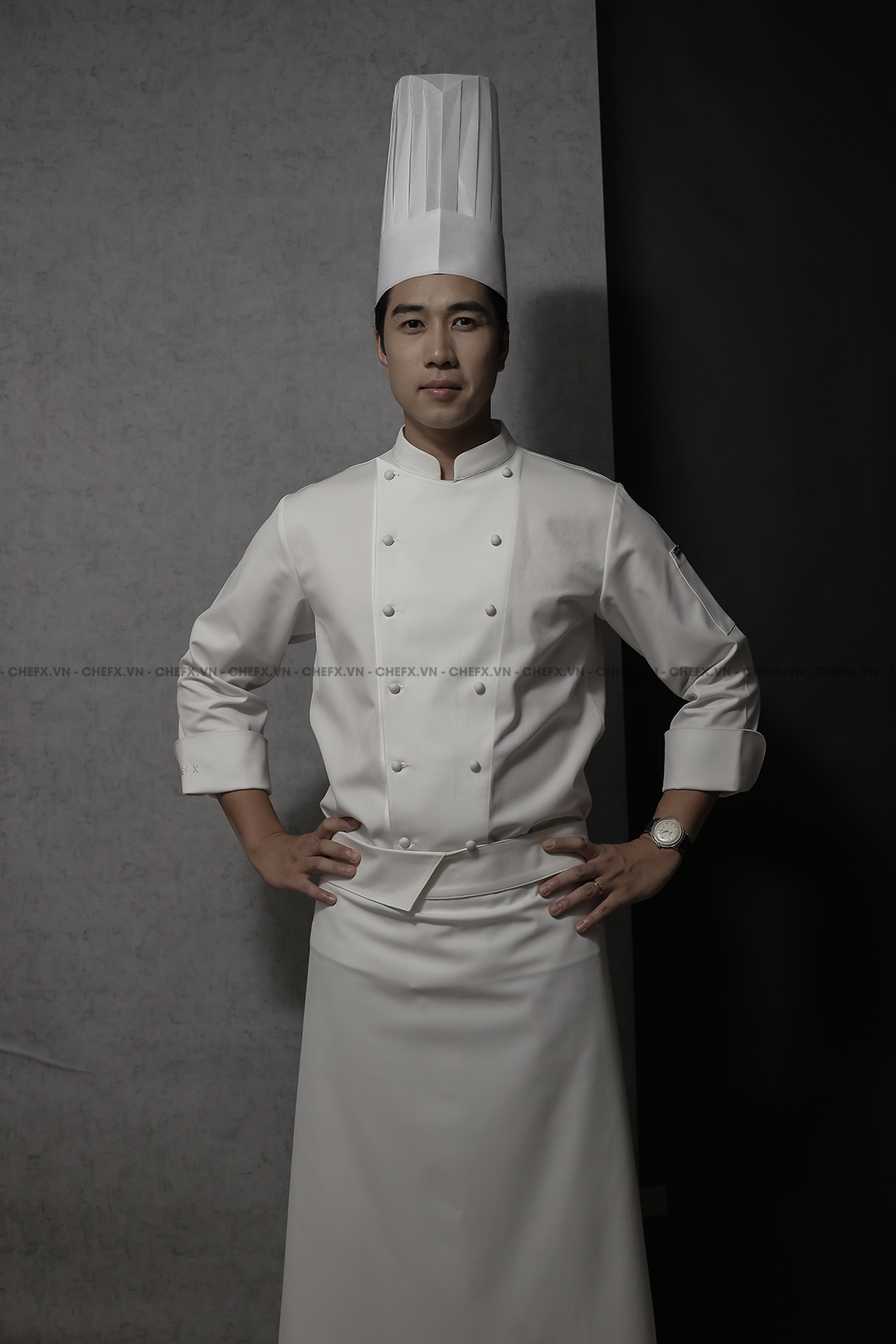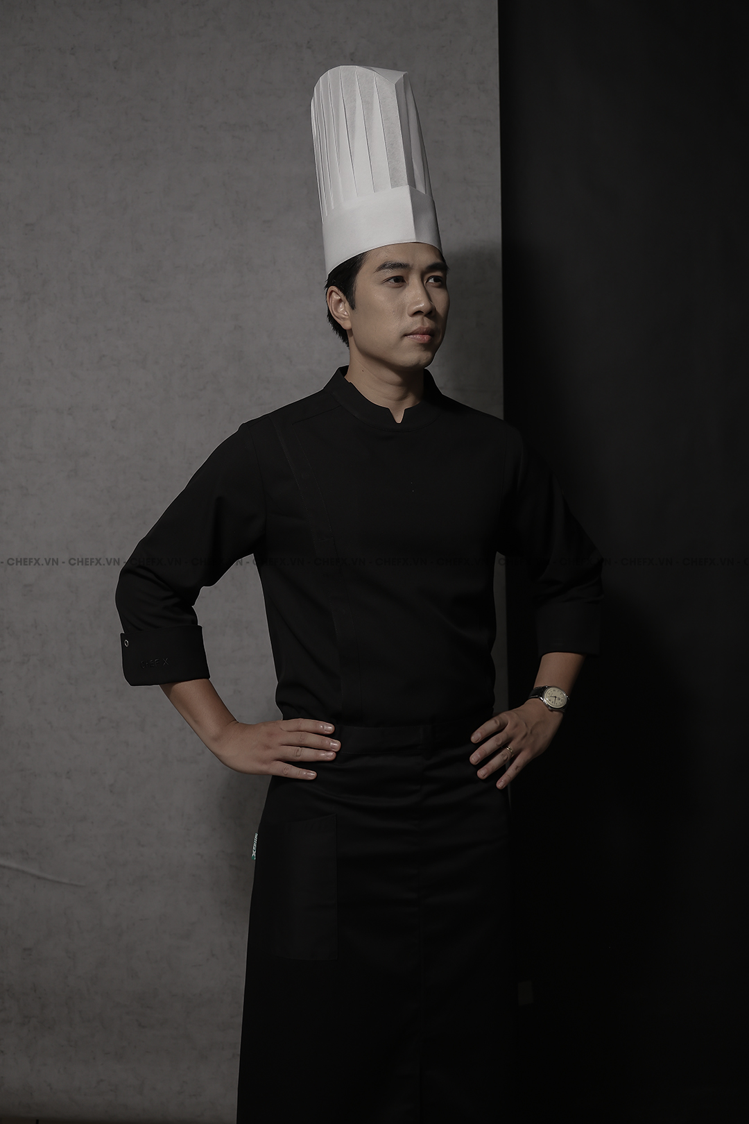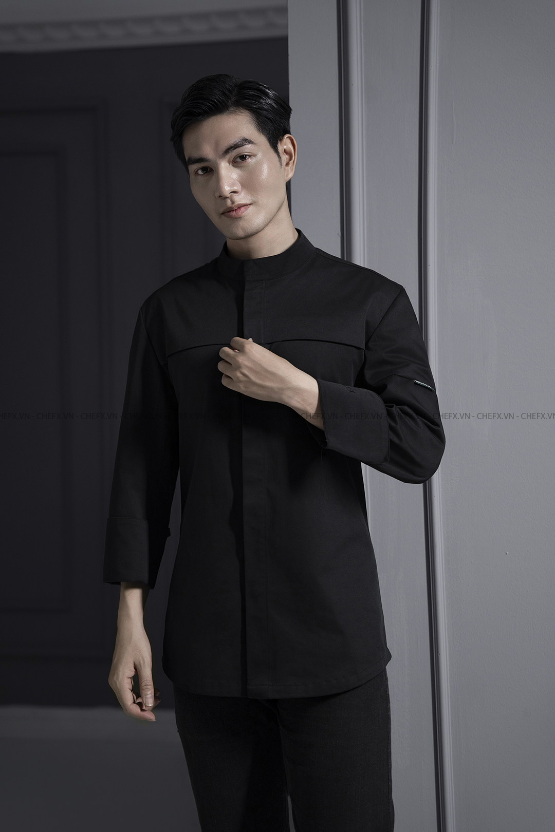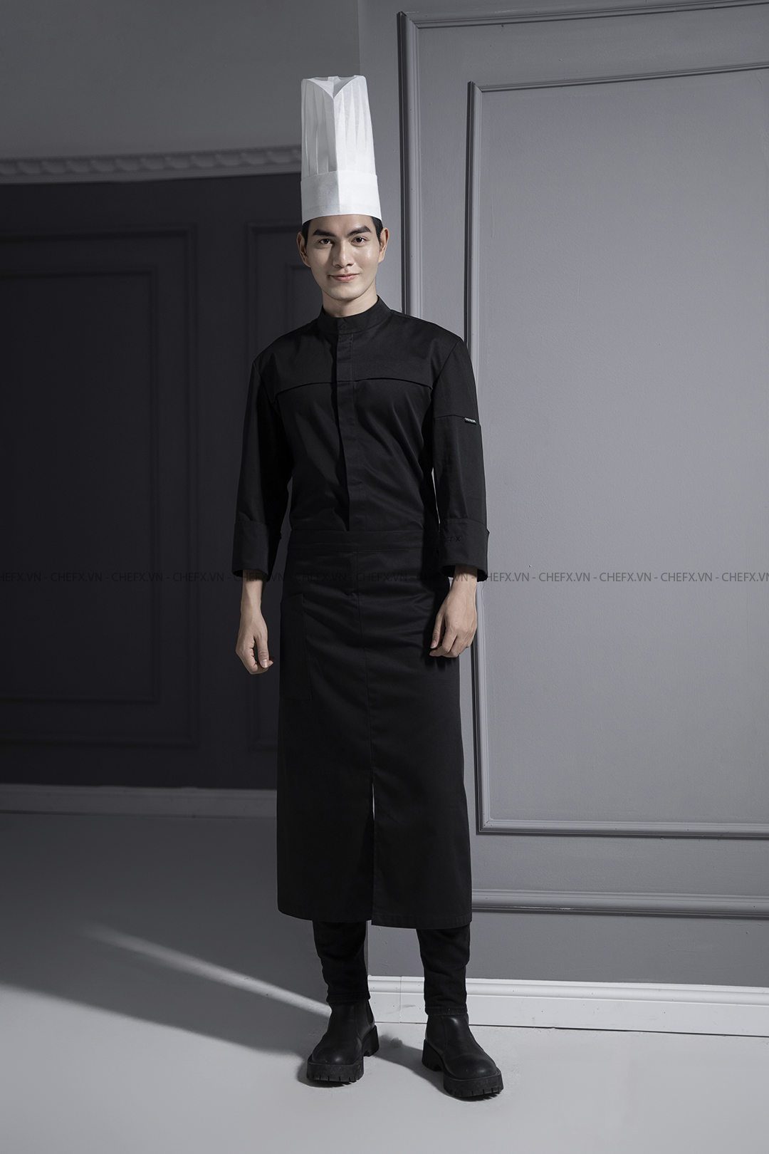 [BT01] ÁO BẾP TRƯỞNG DÀI TAY MÀU ĐEN CÚC BẤM - LONG SLEEVE EXCUTIVE CHEF JACKET BT01 WITH SNAP BUTTONS